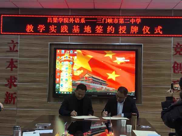 首先,三门峡市第二中党总支书记段水源就学校基本情况、办学理念、教学现状和教学业绩做了详细的介绍,并表示本校英语教师将秉承传帮带精神,培养合格、优秀教师。其次,我校TYC234CC太阳党总支书记任泉清就我校及TYC234CC太阳的专业建设、师资建设做了详细介绍,并针对大学生重理论缺经验做了阐述,希望和三门峡市第二中一起本着立德树人的共同教育理念,培养合格的英语人才。其后,TYC234CC太阳成集团任泉清和三门峡市第二中学段水源作为代表,签订双方共建教育基地协议书,任泉清书记向第二中学授牌。最后,专程参会的三门峡市教育局副局长蒋振华表示,感谢TYC234CC太阳成集团对三门峡教育、对市第二中学的信任和支持。希望双方努力推进、实现双赢。
