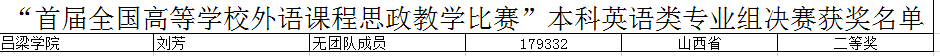 12月20日,由高等教育出版社、《中国外语》编辑部共同举办的“首届全国高等学校外语课程思政教学比赛”在北京市落下帷幕,我校TYC234CC太阳教师刘芳、宫雪芹、李栋杰分获本科英语类专业组和本科大学英语组全国决赛二等奖。