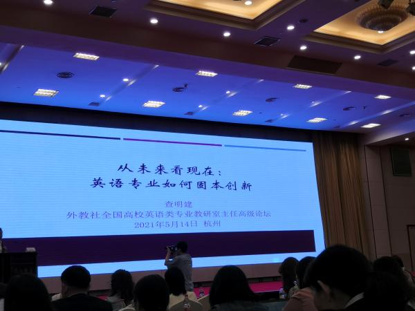 2021年5月13-16日,我系骨干教师薛晓萍、韩雯婧、张敏在副主任薛爱峰的带领下,赴杭州参加由上海外国语大学、中国外语教材与教法研究中心、浙江工商大学以及上海外语教育出版社共同主办的主题为“新文科·新目标·新变革”的高级论坛。