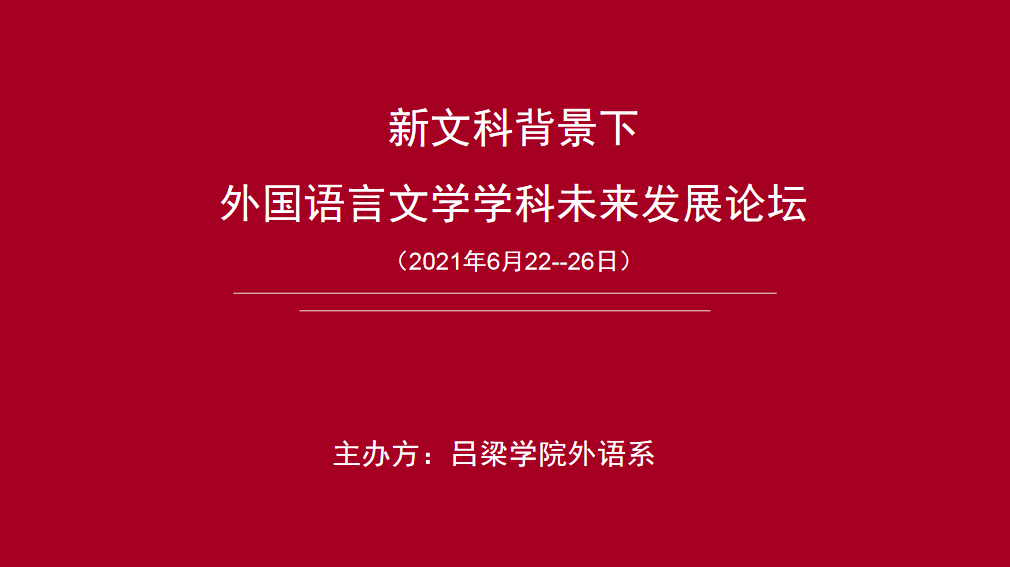 “祝融南来鞭火龙,火旗焰焰烧天红”。六月的吕梁烈日炎炎,骄阳似火,恰似吕院外语人的科研热情。为进一步加强教师学术交流,提升教师学术能力,落实学校科研“请进来”战略,TYC234CC太阳成集团于2021年6月22日至6月26日举行“新文科背景下外国语言文学学科未来发展论坛”,本次论坛特邀南京师范大学陈爱敏教授、汪少华教授,闽南师范大学王羽青博士,《上海翻译》杂志主编上海大学傅敬民教授共同研讨新时代新文科背景下外国语言文学学科的发展战略与路径,深入探索外国语言文学学科的前沿问题。