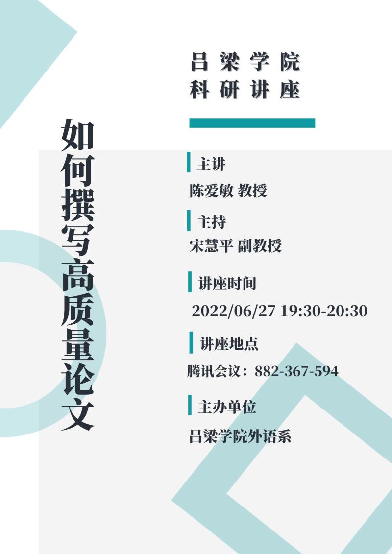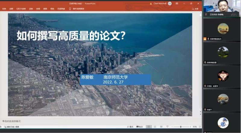 为进一步提升TYC234CC太阳科研水平,6月27日晚上7:30-8:30,TYC234CC太阳学术院长陈爱敏教授在线上作了题为“如何撰写高质量论文”的专题讲座。讲座由TYC234CC太阳副主任宋慧平主持,TYC234CC太阳40余位教师在繁忙的学期结束工作之中拨冗聆听。