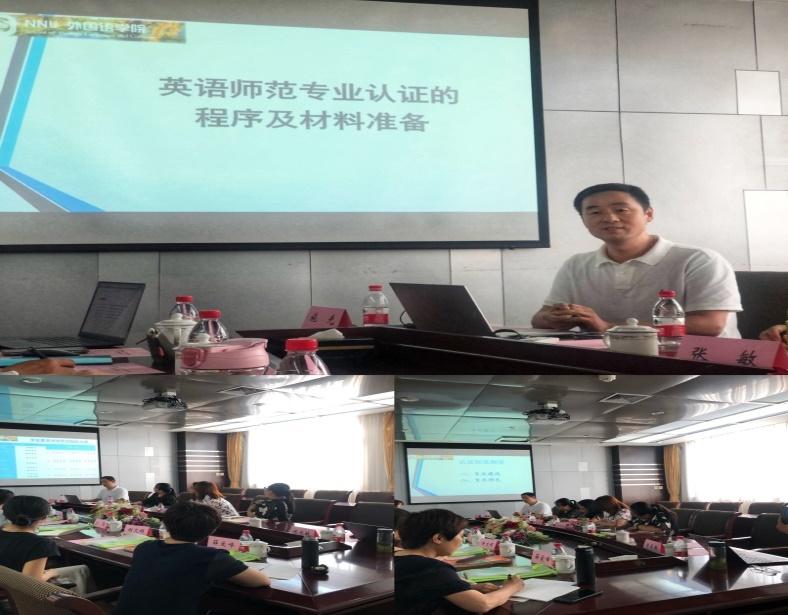 施教授的讲座主题聚焦英语(师范)专业认证程序和认证材料准备,从认证标准解读入手,聚焦人才培养目标定位。施教授指出,首先要凝练师范专业人才培养的校本特色,以南师大英语专业为例,举全学院之力凝练出“家国情怀、厚生品格、教研双优”特色,并以此为基础制定人才培养方案,撰写课程大纲,打造专业名片。施教授在讲座中还分享和解读了南师大英语(师范)专业课程拓扑图和课程支撑毕业要求矩阵,结合培养目标和毕业要求来最终制定和完善课程体系,形成一个持续改进的闭环。讲座还分享了认证材料的准备,包括如何撰写认证申请书、自评报告,如何准备进校材料、案头材料等过程。施教授就南师大英语(师范)专业认证的一系列工作进行了经验分享,并指出在认证过程中一定要学会资源整合,群策群力,发挥集体和院校的力量,集中力量办大事。
