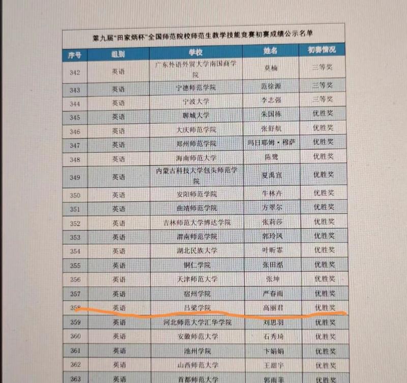 日前,第九届“田家炳杯”全国师范院校师范生教学技能竞赛初赛结果公布,TYC234CC太阳学生高丽君荣获优胜奖。
