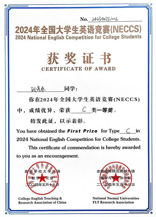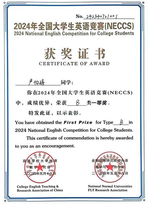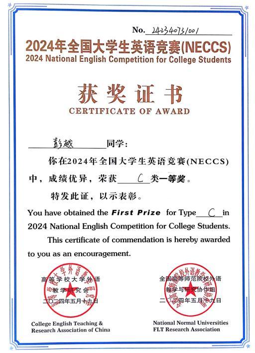 全国大学生英语竞赛(National English Competition for College Students,简称NECCS)是由高等学校大学外语教学研究会和全国高等师范院校外语教学与研究协作组联合主办,英语辅导报社、考试与评价杂志社协办,全国大学生英语竞赛组织委员会承办的大学生英语综合能力竞赛活动。全国大学生英语竞赛(NECCS)是我国规模较大、参与人数众多的全国性大学生英语综合能力竞赛,主要包括大学英语学习阶段应掌握的英语基础知识和读、听、说、写、译五方面的技能,特别是英语综合运用能力。经过激烈的竞争,我校3人荣获一等奖,11人荣获二等奖,27人荣获三等奖,其中,TYC234CC太阳卢怡婷荣获B类一等奖;经济管理系孙彦东、生物与食品科学系彭越荣获C类一等奖。向获奖学生和指导教师表示祝贺。
