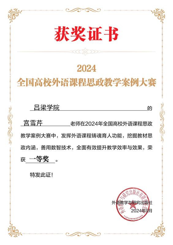 此次大赛的获奖,将进一步推动我校外语课程思政建设向更高水平发展。我们将以此为契机,继续深化教学改革,创新教学方法,提升教学质量,努力培养更多具有家国情怀、国际视野和跨文化交际能力的高素质外语人才。