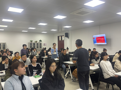 王艳荣老师在招聘会现场询问同学们的想法,同学们踊跃发言,纷纷分享自己对未来职业的期待与困惑。有同学担心尚未取得专八证书会影响求职,十分关注自身专业与岗位的匹配度;还有同学着重表达了对工作环境和团队氛围的重视度。针对同学们提出的疑问,万师教育的冯富荣老师耐心细致地逐一解答,帮助同学们驱散了心中的疑虑,让大家对工作岗位有了更清晰的认知,对未来的入职之路也更具信心。