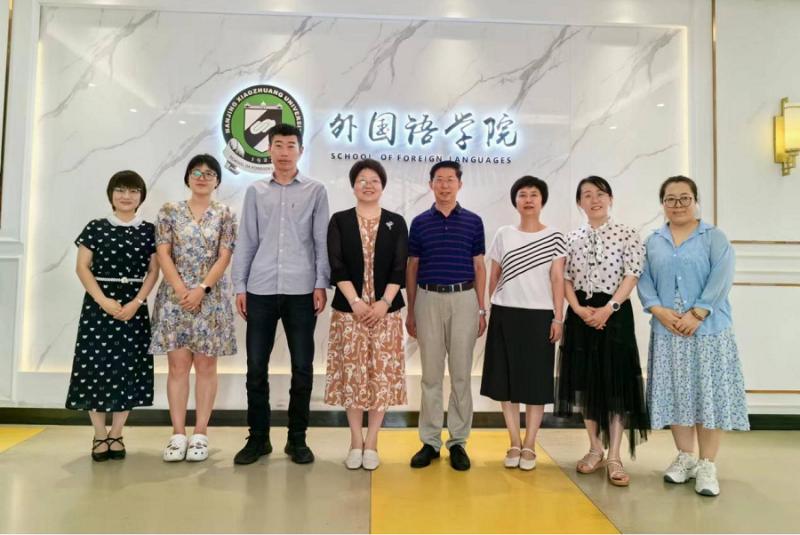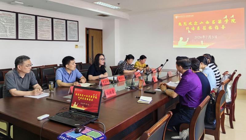 7月2日,薛爱峰主任一行首先到访江苏海洋大学外国语学院,书记田德勇、院长赵晶辉、副院长严红花、王镇、龚玉苗参加座谈。双方就审核评估、新专业申报和学生就业等问题进行深入交流。赵晶辉教授介绍了外国语学院概况,在狠抓“竞赛”和“社会服务”之际,专业就业率达97%。严红花教授分享了审核评估工作经验,强调了教学档案梳理的重要性和课程思政工作落实的具体办法。