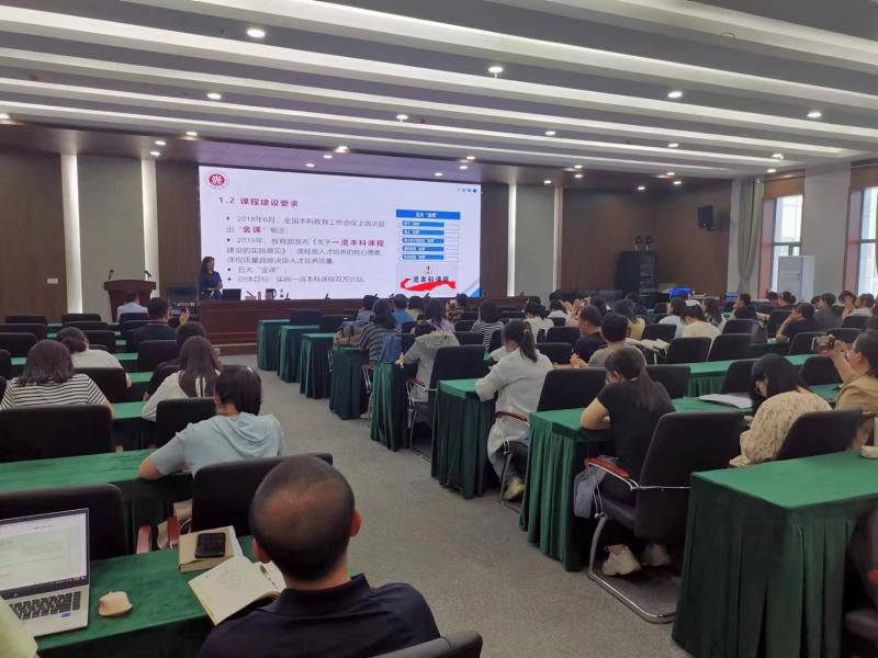 芮燕萍教授的讲座以山西省一流本科课程《商务英语写作》的建设为例,从慕课“建用管学”实践出发,从课程建设初期的团队建设和教学体系建设,到课程投入使用时交互和测评体系的设计,再到课程平台后期管理和数据维护,带领大家全方位了解了一流课程建设的各个环节。讲座现场气氛严肃活泼,在座教师受益颇多。