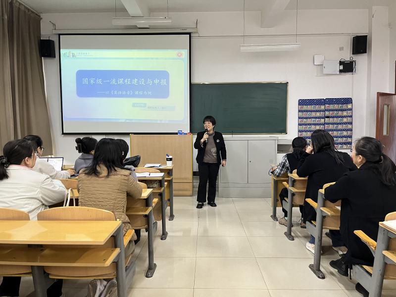 2023年10月9日,长治学院TYC234CC太阳主任郭佳教授在百忙之中莅临吕梁,为我系全体教师作了关于《国家级一流课程建设与申报交流---以《英语语音》课程为例》的讲座。