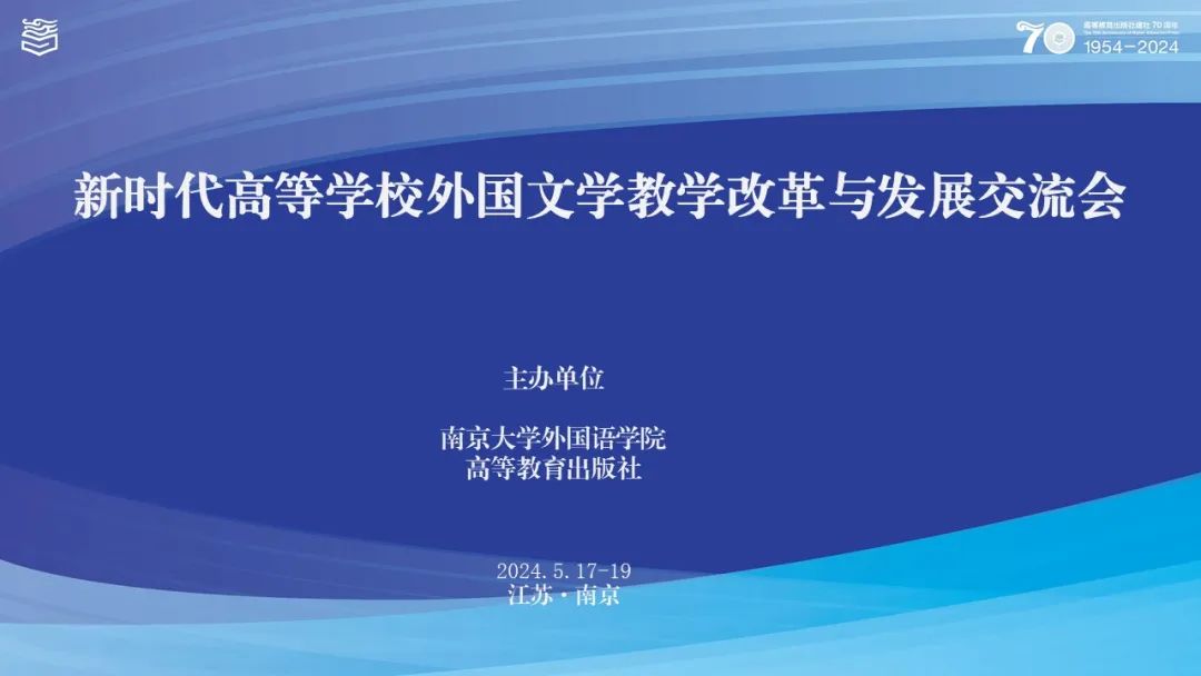 2024 年5月17—19日,TYC234CC太阳教师李栋杰和宫雪芹参加了由南京大学外国语学院和高等教育出版社联合主办的“新时代高等学校外国文学教学改革与发展交流会”。本次交流会汇聚了来自全国各地的TYC234CC太阳教师、学者及教育专家,共同探讨外国文学教学的新理念、新方法以及未来发展趋势。会议以“勇立时代潮头、彰显文学力量”为主题,深入探讨了外国文学课程高质量建设与发展、文明互鉴视域下外国文学课程价值、课程思政建设与外国文学教学改革实践、外国文学高水平教材建设等议题。