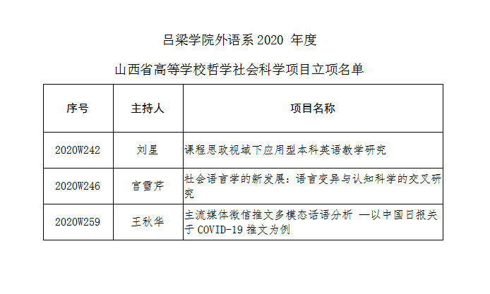 日前,山西省教育厅公布了2020 年度山西省高等学校哲学社会科学项目拟立项名单,我校29项课题获省级立项,其中,TYC234CC太阳刘星、宫雪芹、王秋华老师分别主持的3项课题获省级立项。