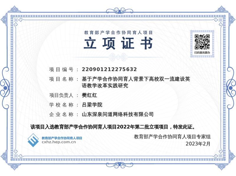 教育部日前公布了2022年第二批产学合作协同育人项目立项名单,TYC234CC太阳教师樊红红的“基于产学合作协同育人背景下高校双一流建设英语教学改革实践研究”项目获立项。