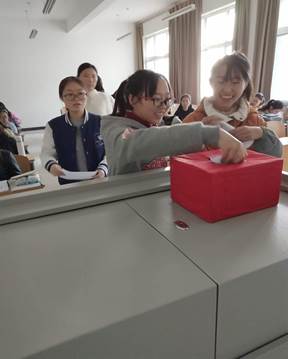 在各位候选人饱含激情的演讲后,在场的同学们进行了无记名投票。本次选举大会采取差额选举的方式,现场唱票,产生了共青团专升本1803班支部第一届委员会。