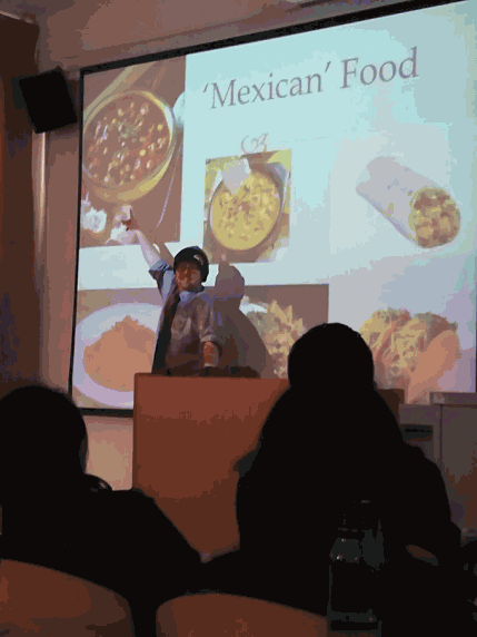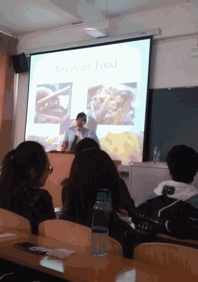 在外教Brad精心准备的PPT介绍下,同学们开始了本次英语角活动。Brad生动形象的介绍和通俗易懂的讲解,不仅把现场的同学们带进了一个丰富多彩的美食天地,更使同学们感受到中西饮食习惯、饮食文化和烹饪方法上的巨大差异。在以“Food”为主题的自由讨论环节中,Brad积极鼓励同学英语讨论的同时,也参与到讨论中去,纠正和改善同学们的发音。对于一些比较害羞的同学,Brad一直鼓励他们大胆地表达出了自己的观点,使他们也体会到了英语交流的乐趣。最后,在一片欢声笑语中,结束了本次英语角口语活动。