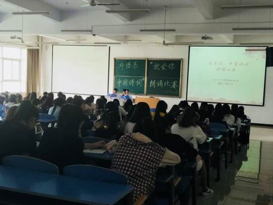 在欢快的开场舞结束后,本次朗诵比赛正式拉开帷幕。来自全系三个年级的20位同学,围绕“我爱你,中国诗词”这一主题,朗诵了我国古代、近代及现代三个时期的诗词,或慷慨激昂,或细腻如丝。选手们声情并茂,极富感染力,用英语的形式淋漓尽致地展示出中国诗词之伟大,在场的观众情不自禁,沉醉其中。比赛结束后,分团委书记孟宏就选手们的演讲给予了精彩的点评。张智则对同学的英语学习提出了几点要求,希望同学们在新时代的背景下,努力学好外语,把中华优秀文化传播出去。