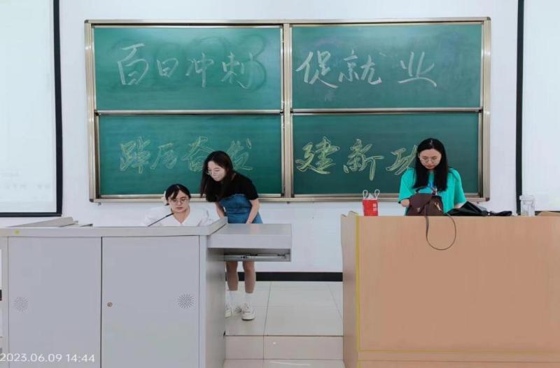 会上,辅导员王艳荣老师就毕业生毕业去向登记信息填写的相关问题为同学们答疑解惑,希望同学们认真填报自己的毕业去向,如实登记档案信息和户口信息,要积极就业,并勉励同学们要把握当下,珍惜美好时光,给未来的自己书写一份满意的答卷。随后,张永红书记发言,并嘱托毕业生要对自己的各项事务负责,离校前把相关学习和生活方面的问题落实到位,努力提升自己,把握机会,积极应聘工作。